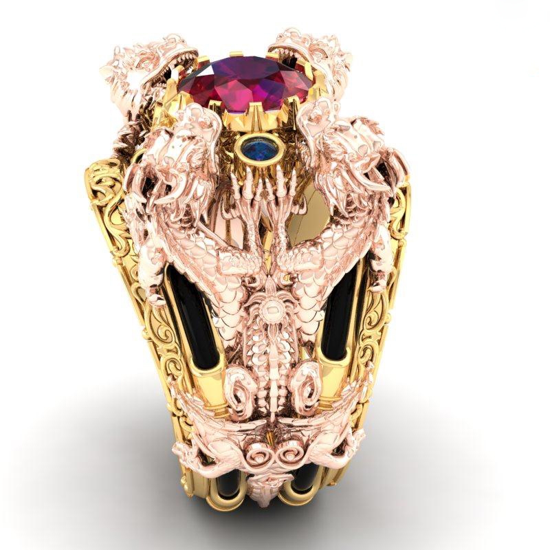 Nhẫn lông voi bậc đế vương kết hợp đá Ruby,Saphire